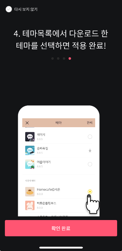 - 카톡 테마 목록보기 화면으로 이동해 주세요.