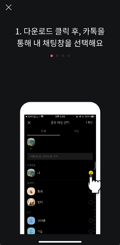 - 다운로드 클릭 후 카톡 채팅창을 선택