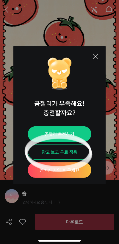 - 원하는 카톡테마를 선택했다면 '곰젤리'가 필요한데요.