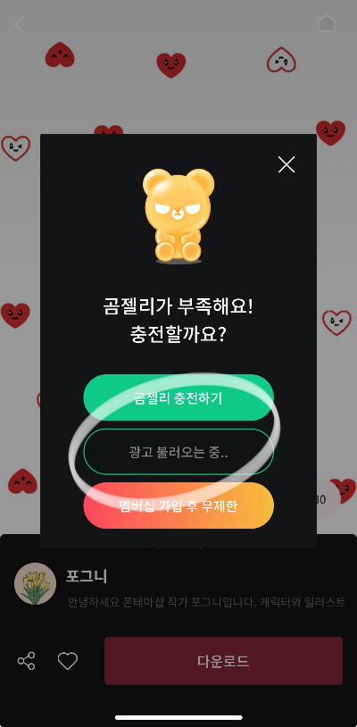 - 무료 광고 보기를 이용해서 곰젤리를 획득합니다.