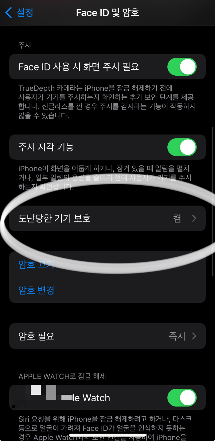 도난당한 기기보호 세팅하기