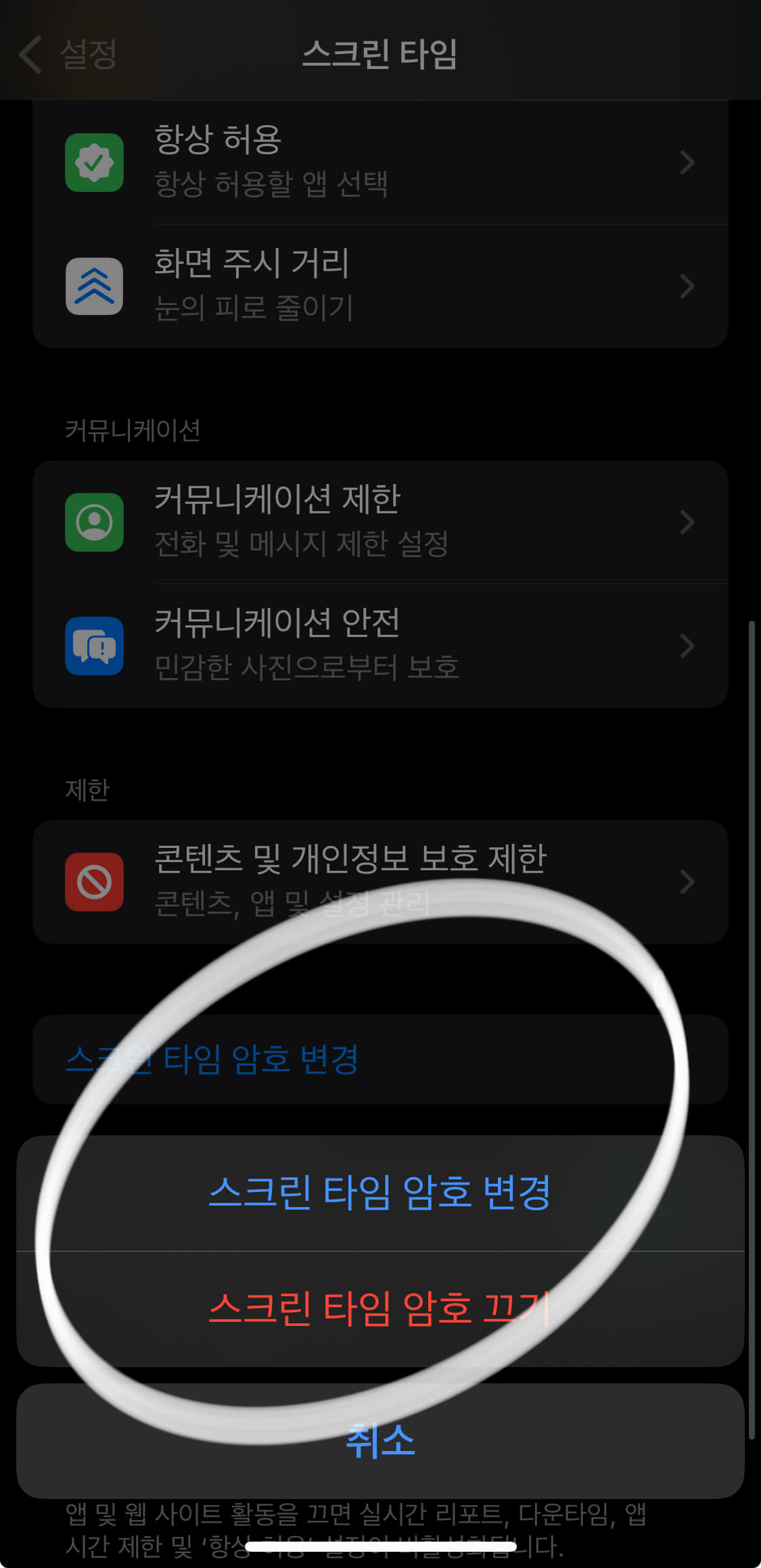 스크린 타임 비밀번호 설정