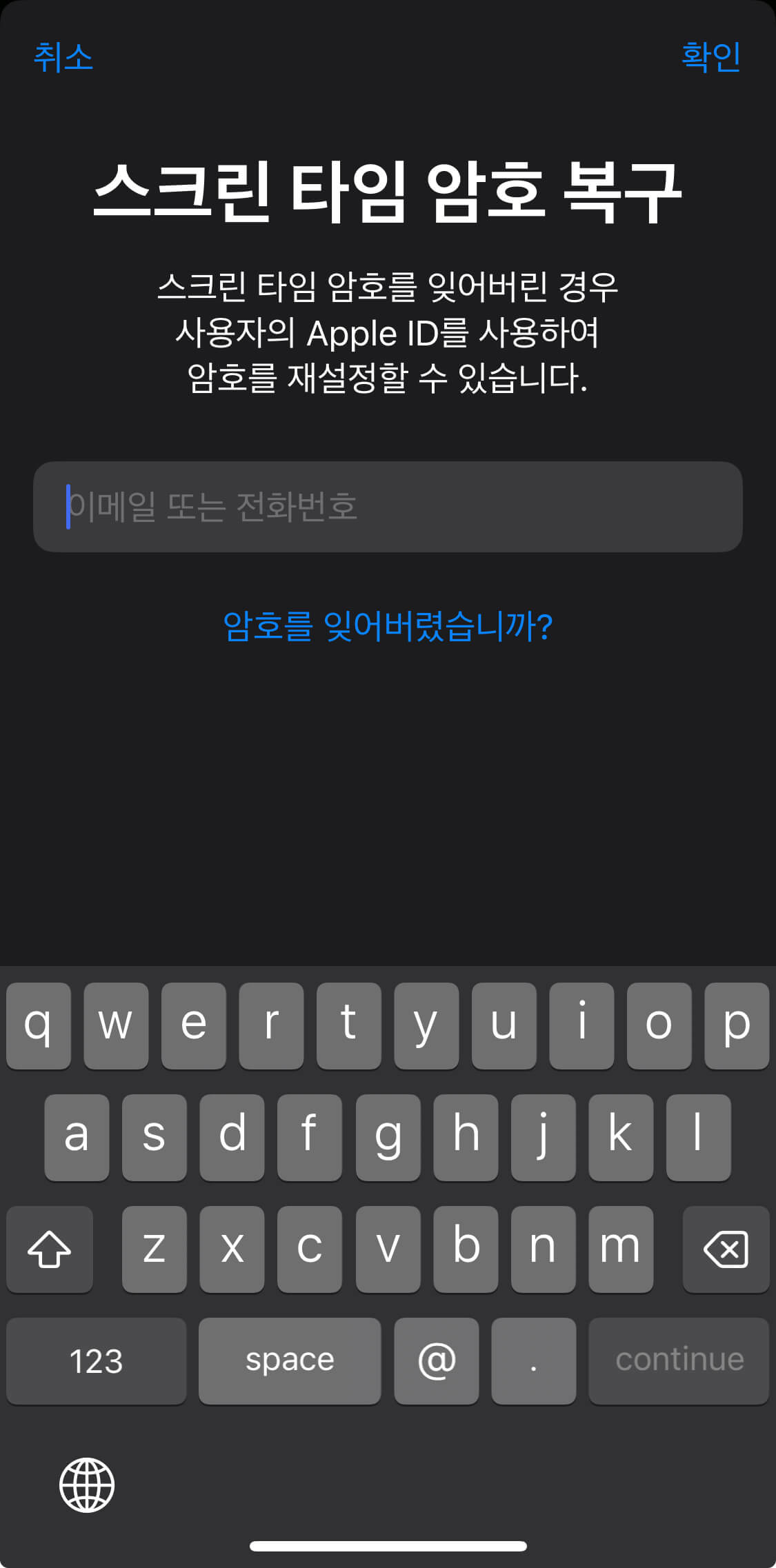 스크린 타임 비밀번호 설정