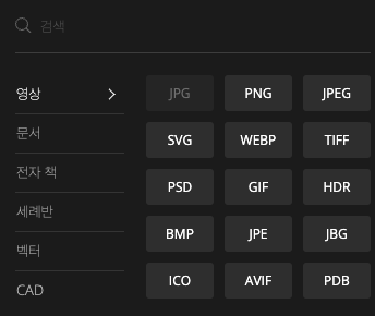 화면에 보이는 에 [ jpg ]를 클릭하면 아래와 같은 다양하게 변환이 가능한 확장자들을 확인할 수 있습니다.