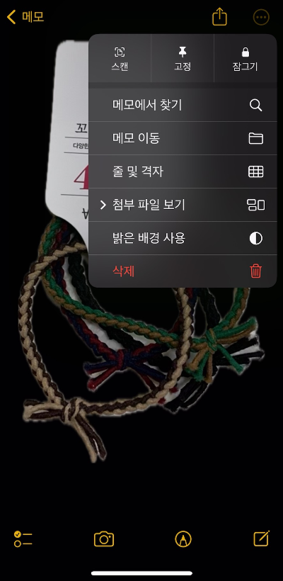 메모 우측 상단 ... 동그라미를 선택