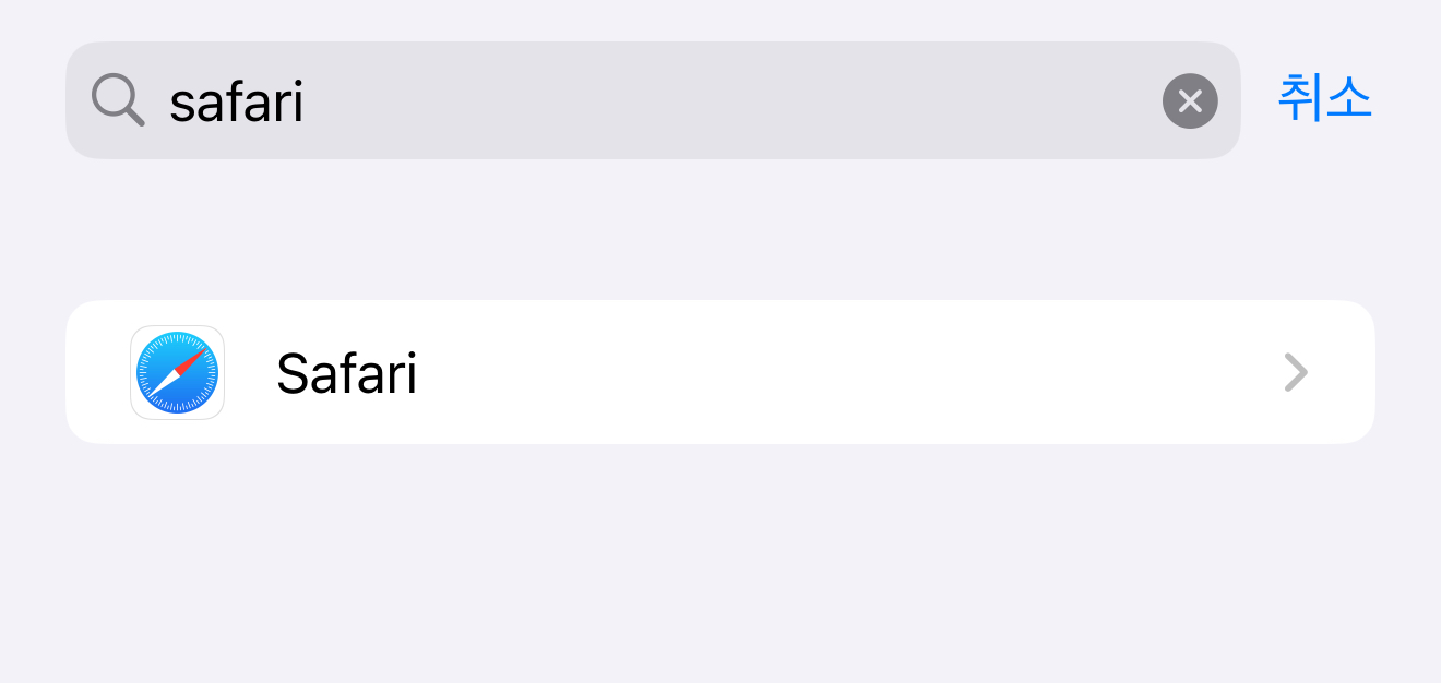 2. 아래로 스크롤하여 **“Safari”**를 찾아 탭합니다.